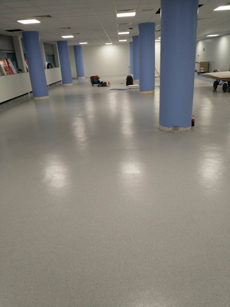 Client: Arcelor Mittal Orbit Brief: To grind the floor, install DPM, install latex and then install Forbo Sure Step flooring