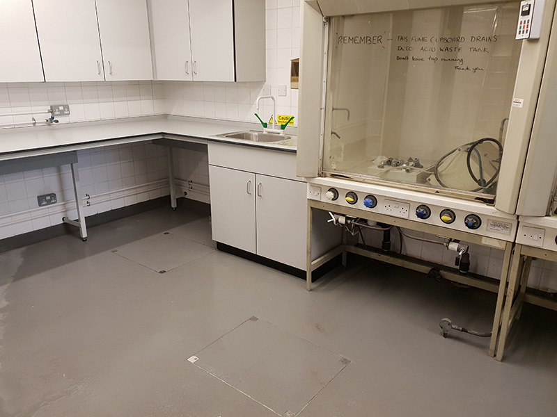 Client: National History Museum Brief: To supply & install Floorcrete Resin Polyurethane screed to Acid Lab. 30m2 with contract value