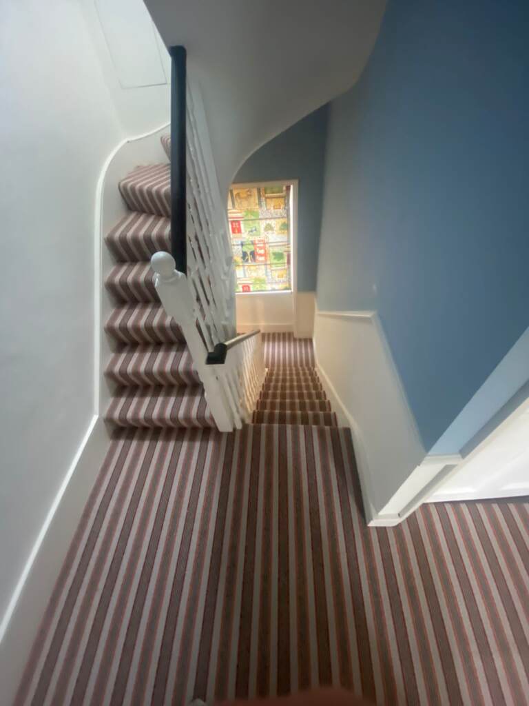 Client: Private Residence In Wimbledon Brief: To supply & install Alternative Flooring Margo Selby Stripe Frolic Pegwell 1922 carpet to
