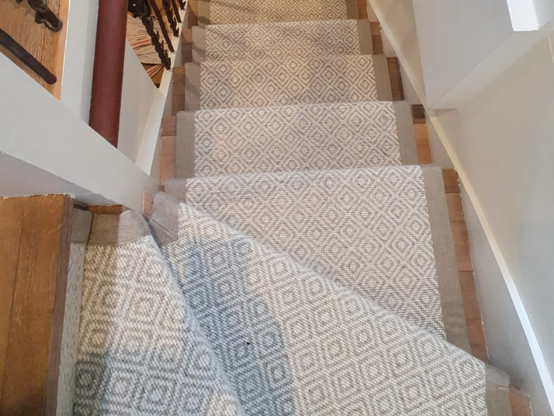 Client: Private Residence In Kensington Brief: To supply & install Lewis Abbott Jute Herringbone Natural carpet to premises Our experienced