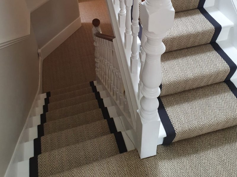 Client: Private Residence In Croydon Brief: To supply & install Alternative Flooring Sisal Herringbone Hairstock carpet to premises