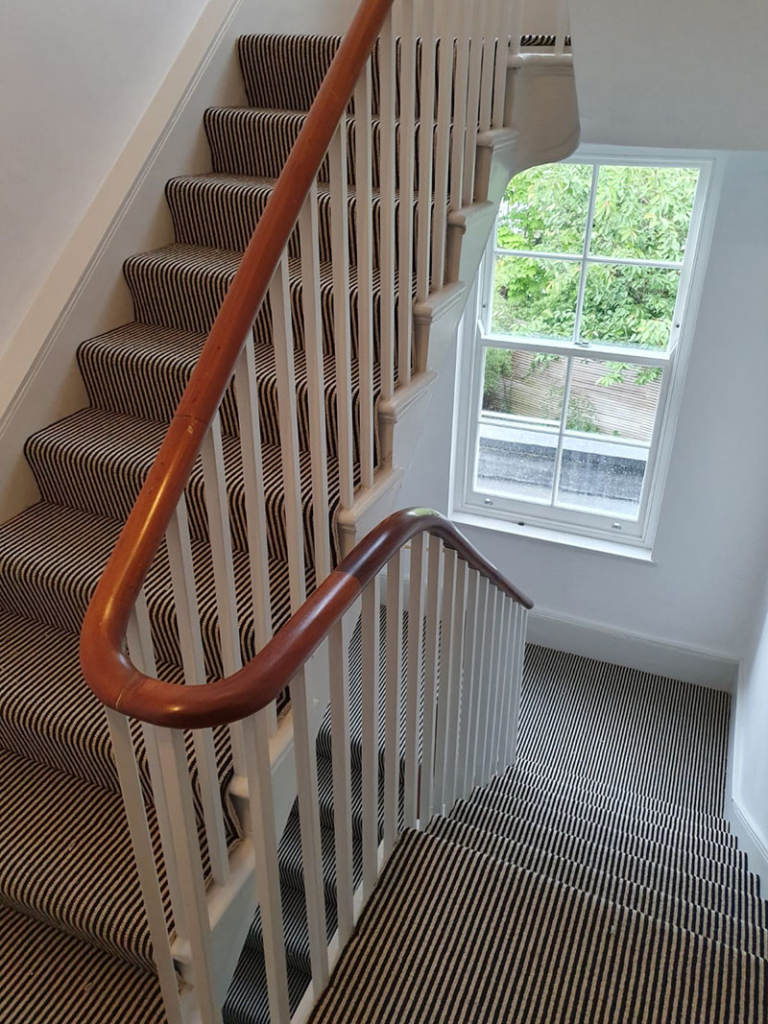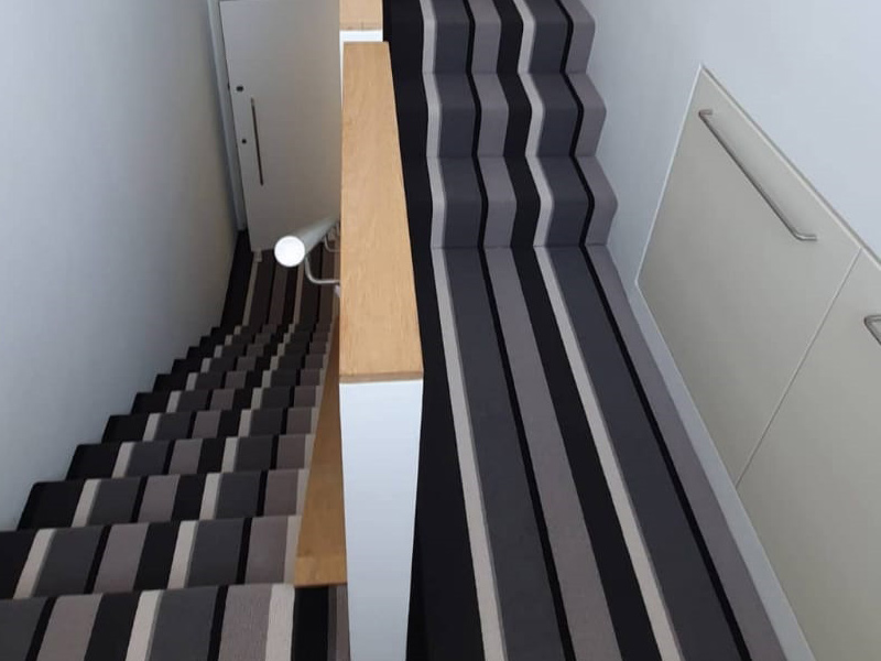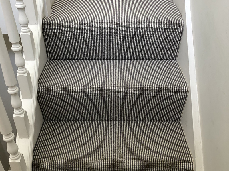 Client: Private Residence In Fulham Brief: To supply & install black & white striped carpet to stairs