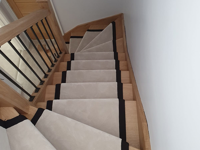 Client: Private Residence In Islington Brief: To supply & install grey carpet with black binding to stairs