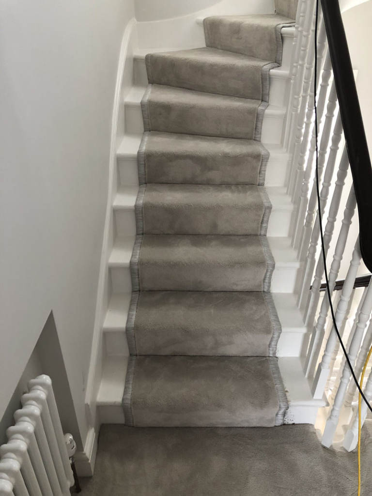 Client: Private Residence In Belgravia Brief: To supply & install grey carpet to stairs as a runner carpet with whipped