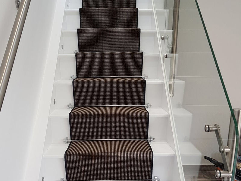 Client: Private Residence In North London Brief: To supply & install brown carpet as a stair runner with stair rods