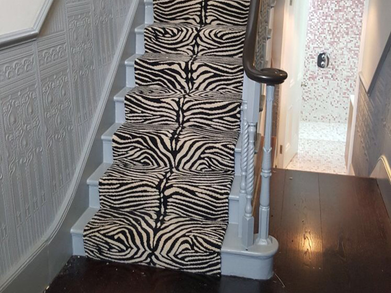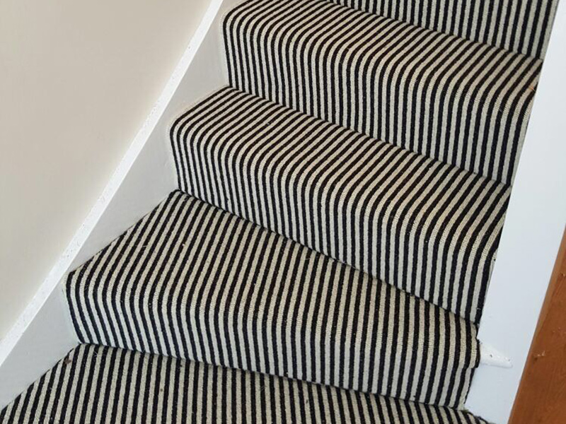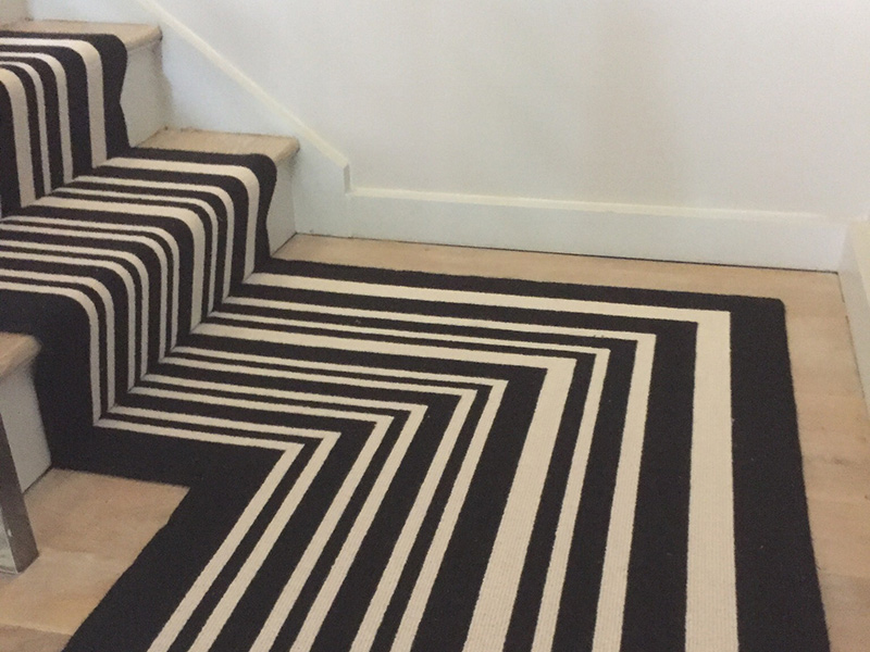 Client: Private Residence In West London Brief: To supply & install black and white striped stair carpet to stairs