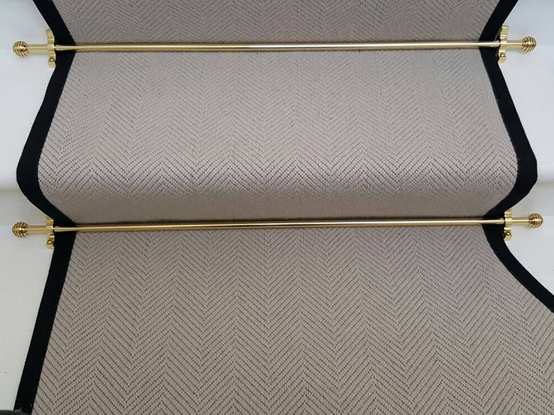 Client: Private Residence In East London Brief: To supply & install grey herringbone carpet with whipped black edges to stairs
