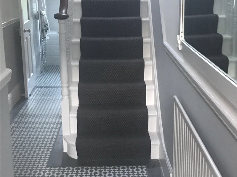 Client: Private Residence In East London Brief: To supply & install black and white carpet to stairs