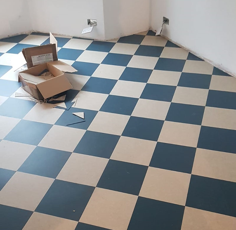 Client: Private Residence In Kensington Brief: To supply & install Marmoleum in a linoleum checkerboard flooring design to premises