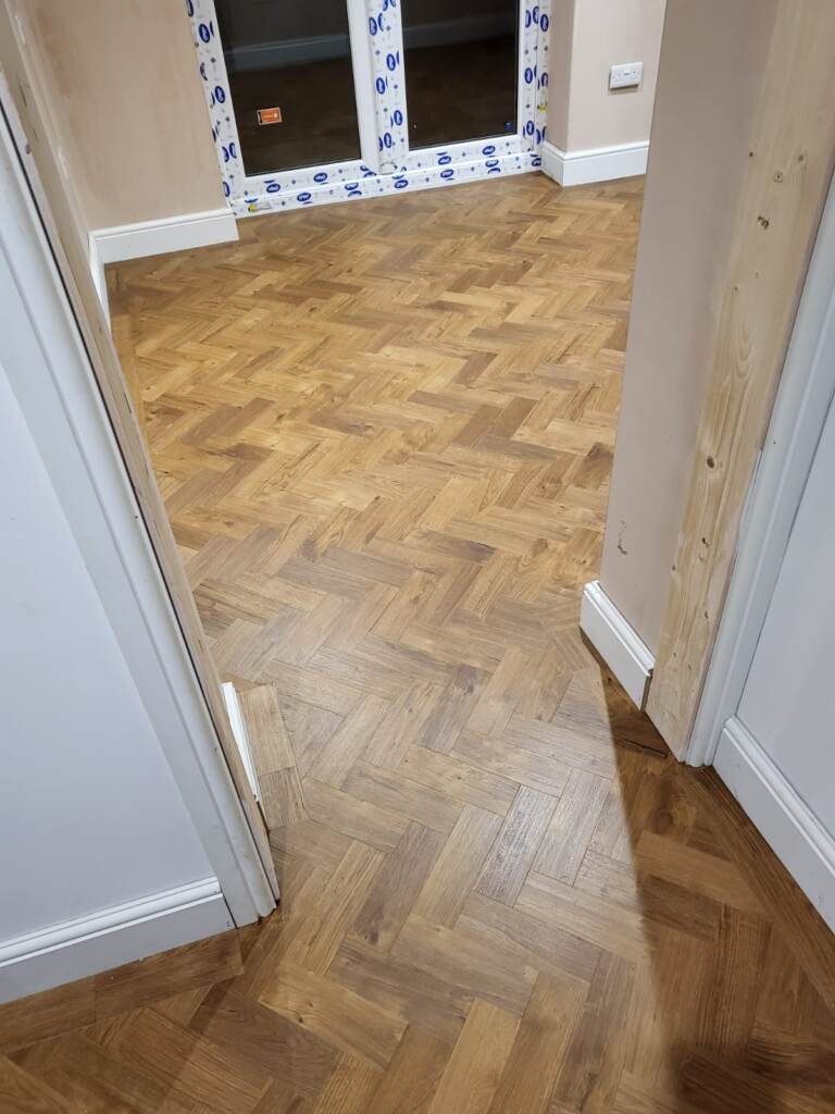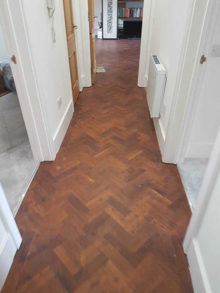Client: Private Residence In Putney Brief: To supply & install Amtico Spacia Black Walnut parquet to premises