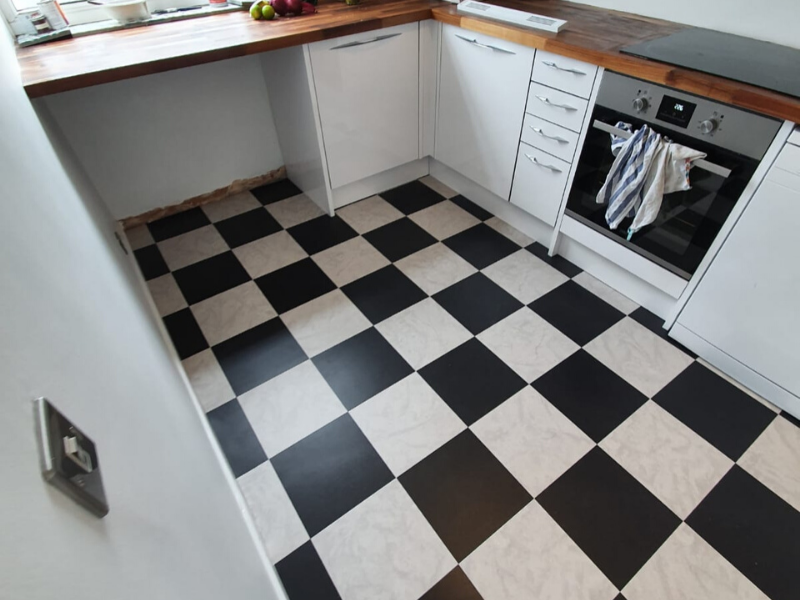 Client: Private Residence In Acton Brief: To supply & install Amtico Black Walnut luxury vinyl tile in wood design to