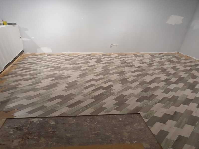 Client: Private Residence in Kilburn. Brief: To supply & install Amtico Spacia Sun Bleached Oak luxury vinyl flooring in herringbone