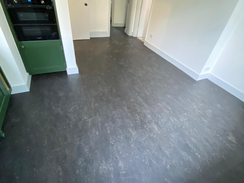 Client: Private Residence In Islington Brief: To supply & install Marmoleum Marbled Black 2939 linoleum flooring to premises