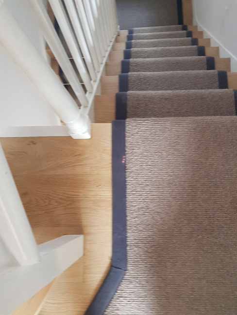 StairsBy djon / August 11, 2017 Client: Private Residence In East London Brief: To supply & install grey wool carpet with black binding to stairs