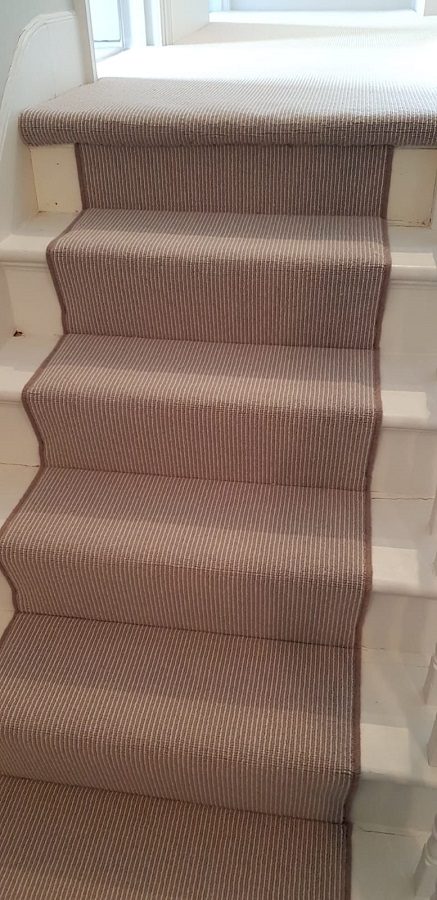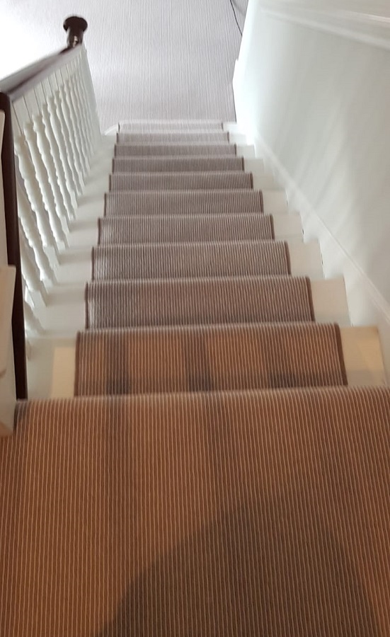 Carpet With Binding Installed In PimlicoBy djon / June 18, 2018 Client: Private Residence In Pimlico Brief: To supply & install grey carpet with brown binding to stairs