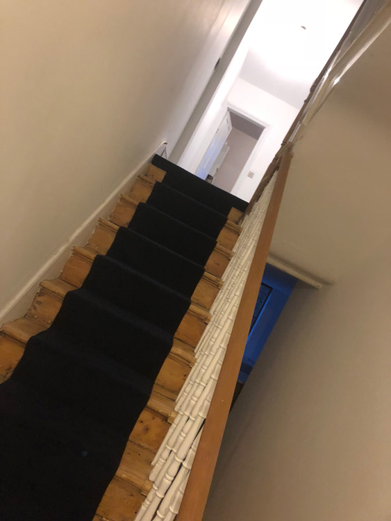 Brief: To supply & install blue carpet to stairs as a runner